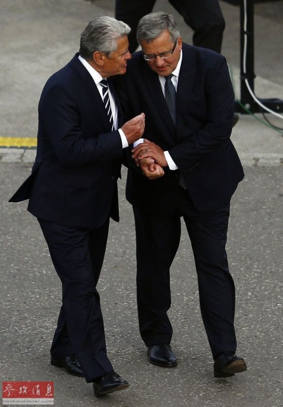 9月1日,波兰总统科莫罗夫斯基(右)和德国总统高克在波兰港口格但斯克出席二战爆发75周年纪念仪式。