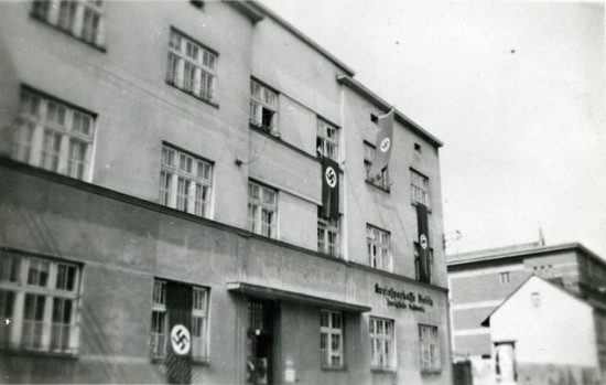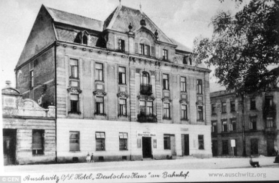 纳粹旗帜用来点缀奥斯维辛的建筑物,他们提醒居民不再受波兰政府的控制。