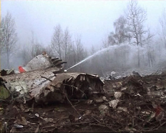 这架图-154型客机于2010年4月10日坠毁,波兰总统卡钦斯基及其妻子和另外94名乘客丧生。死者中有高级军官和政治家,他们原计划去斯摩棱斯克附近的卡廷参加卡廷惨案70周年的纪念活动。在波兰,至今仍流传着许多关于这次坠机的阴谋论。但负责调查的波兰军事检察机关近日刚刚强调,他们认为飞行员和2名俄罗斯空管员分别是主要和次要责任人。(编译/王勍)