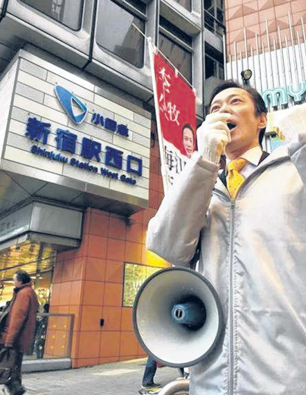 以前,常在灯红酒绿的歌舞伎町街上拉客的他,自决定竞选后每天都在新宿街头拉票。