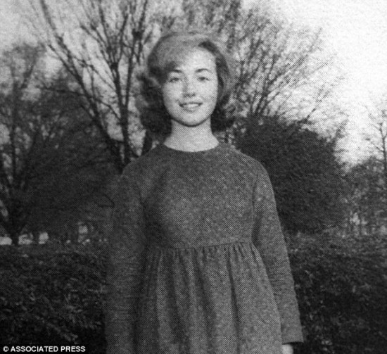 希拉里1947年出生于芝加哥一个富商家庭,从小就对各种领导职位表现出极大兴趣,是学校和社团中的活跃分子。她学业成绩也很好,在高中的最后一年进入美国优秀学生奖学金竞赛决赛。图为1964年伊利诺伊州高中年鉴,希拉里16岁。