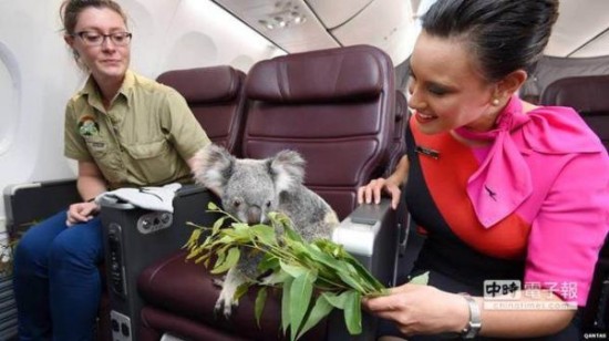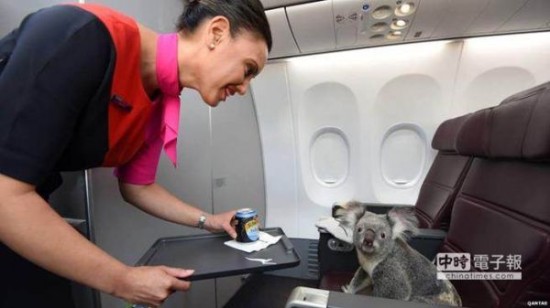 13日澳洲航空公布了考拉坐在机座椅上的照片,空服员为这些贵客递上热毛巾,以及特别为它们准备的飞机餐:尤加利叶大餐。考拉们露出“舒服”表情,看来它们对澳航的服务很满意!