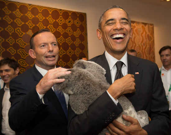 据台湾东森新闻网3月5日报道,2014年由澳大利亚主办的G20高峰会中,有一群“超萌外交使节”成功掳获各国元首的心,美国总统奥巴马笑到连眼睛都瞇成线,就连以“硬汉”著称的俄罗斯总统普京都在“熊抱”后露出腼腆的微笑。