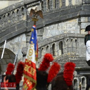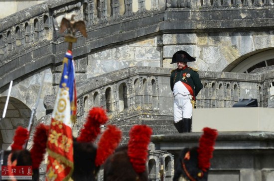 资料图片:在巴黎枫丹白露城堡,演员扮演拿破仑,出现在纪念活动现场。