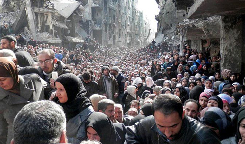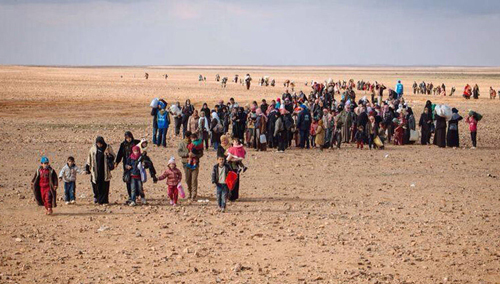 资料图片:逃亡中的叙利亚难民群。(图片来源于网络)