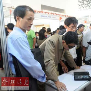 资料图:在平壤国际商品展览会上,人们参观由朝鲜电脑中心研发的平板电脑。新华社记者杜白羽摄