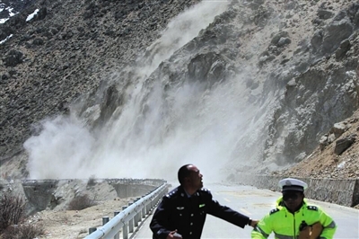 26日15时许,正在距离西藏日喀则市聂拉木县5公里执行任务的两位民警险些被余震震落的滚石击中。