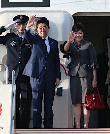 资料图:日本首相安倍晋三与其夫人于日本当地时间26日晚5时多从东京羽田机场搭乘政府专机前往美国,开始为期8天的正式访问。