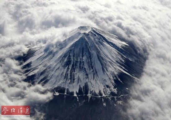 2010年2月2日在空中拍摄的日本富士山。(资料图片)