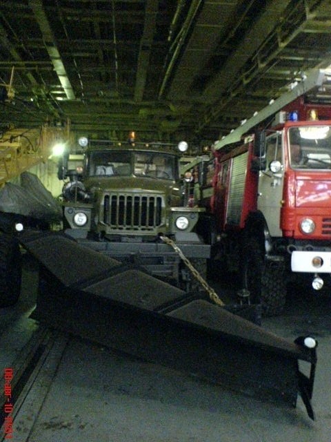 这款TM-59式特种车主要是用来清理甲板的,由于俄罗斯冬季寒冷,甲板上容易结冰,这款利用飞机发动机改装的甲板清理车,可以快速利用高温气流来清理甲板,还是很实用的。