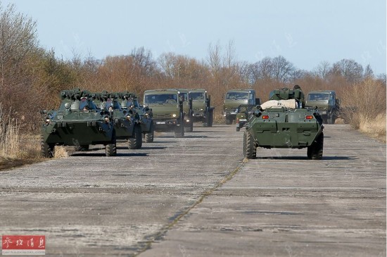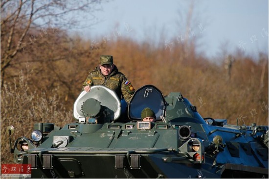 装甲车上的俄军士兵。