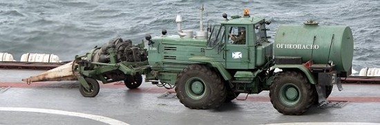 俄海军航母甲板上的TM-59 Zamboni喷气式清理车。