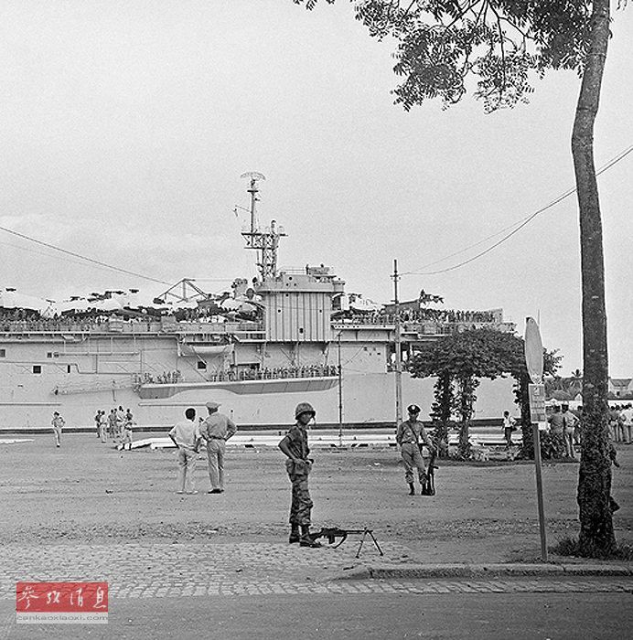 另据美联社5月1日报道,美国海军陆战队员一边往美国大使馆的屋顶爬,一边锁住每一层楼的链式门,以放缓肯定会跟在他们后面的恐慌的越南平民涌进来的速度。他们知道,如果人群蜂拥至楼顶,他们肯定争不过不顾一切想在离开西贡的最后一架直升机上抢到一席之地的数百人。