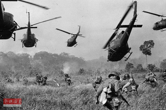 越南战争期间,伤员搭乘直升机撤离战场。