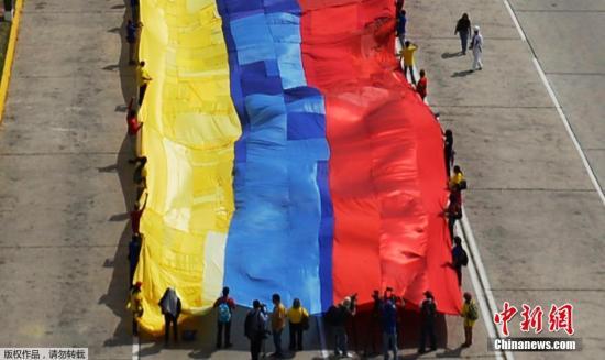 资料图:委内瑞拉民众展示1200米长国旗,抗议美国制裁。