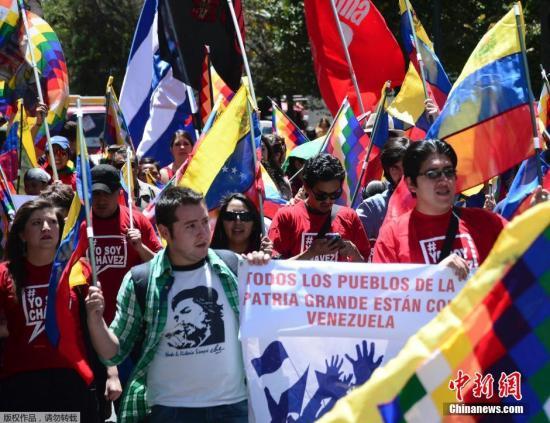 资料图:当地时间2015年3月12日,委内瑞拉加拉加斯,委内瑞拉政府支持者举行示威活动和集会,抗议美国对委内瑞拉实施制裁。