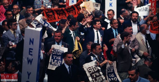 1968年,民主党大会在芝加哥举行,上万反战民众走上街头游行示威。