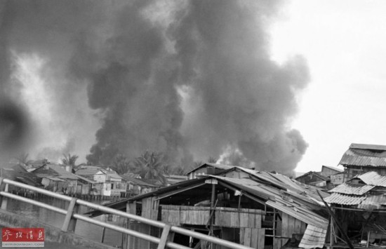 1963年2月28日,遭受凝固汽油弹空袭的越南城镇。