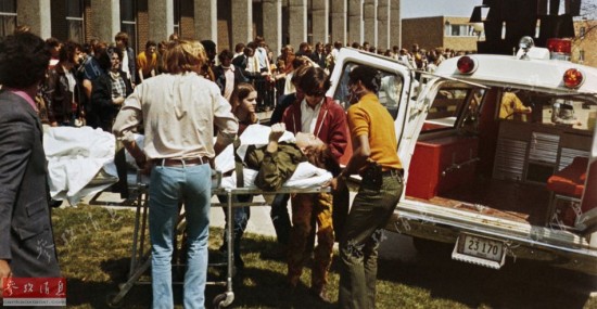 大学生反战示威有暴力化倾向,美国国民警卫队开枪造成学生死伤。