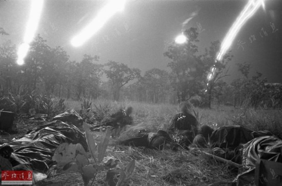 快速机动的越共游击队给美军以沉重的打击。图为1965年11月18日,德浪河谷战役中的美军,照明弹的映照下,多名美军死伤战士等待直升机转移救援。