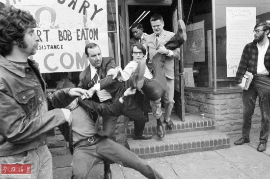自1968年开始的学生反战运动已经不可避免的走上了暴力革命的道路。图为1969年,联邦调查局特工以反越战的罪名逮捕13名青年男女。