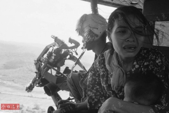 1975年3月22日,南越直升机运送难民,随着美军撤离,越共军队步步紧逼。