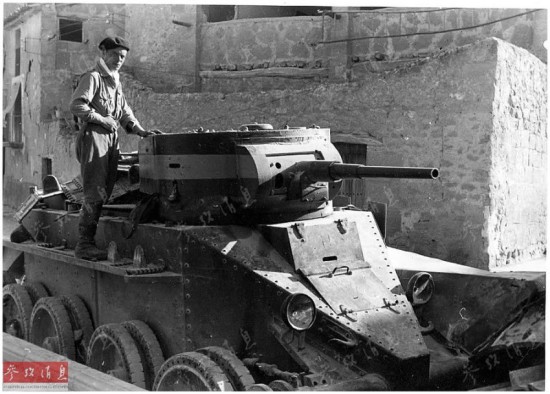 苏联以志愿兵的名义派来了3000人,其中飞行员就多达1000人。图为苏联顾问和苏联为西班牙政府军提供的坦克。