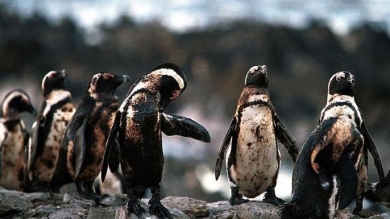 满身燃油的企鹅:这些企鹅身上满是一艘沉船上泄漏的燃料油。共有大约1.9万只企鹅遭殃,1.2万名志愿者参与救助它们。91%的企鹅最终成功康复。