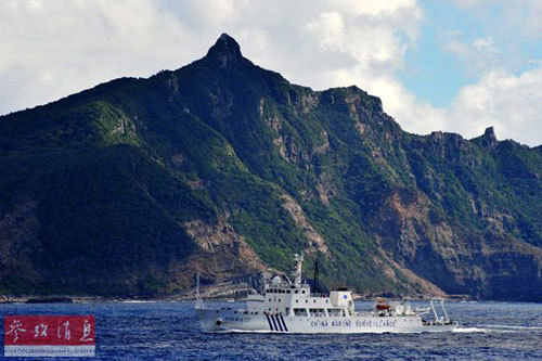 资料图片:2012年9月14日,中国海监15船抵达钓鱼岛海域,对钓鱼岛及其附属岛屿附近海域进行维权巡航执法。新华社记者-张建松摄