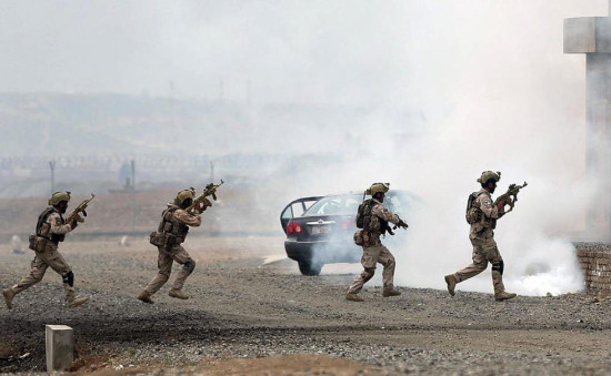 阿富汗内务部特种部队进行训练。