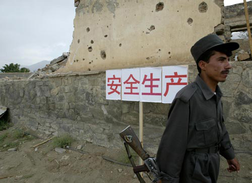 资料图:阿富汗军警在中国援建项目工地外巡逻。(图片源于网络)