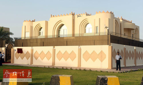 资料图片:塔利班多哈办事处位于多哈新城区,办事处外边有安全警卫站岗。法新社
