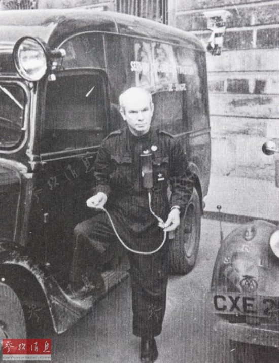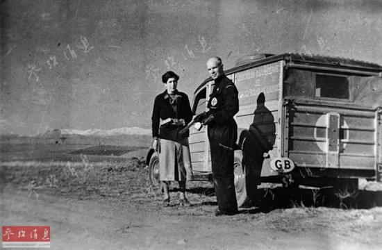 1936年,白求恩冬志愿前往西班牙参加反法西斯斗争。图为西班牙内战期间,白求恩与同事在加拿大医疗队的输血车旁合影。