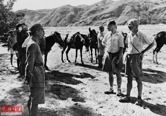 图为1938年,白求恩与聂荣臻司令员(左一)交谈。