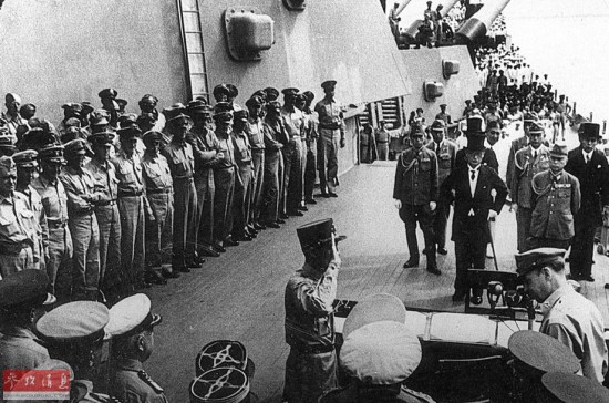 1945年9月2日,日本投降仪式在东京湾“密苏里”号军舰上举行。70年前的5月8日,废墟中的柏林炮火渐息,法西斯德国已无条件投降。当和平的曙光终于普照欧洲大地,遥远的东方战火仍炽,负隅顽抗的日本法西斯仍在疯狂地挥舞屠刀。中国,作为世界反法西斯战争的东方主战场,经历14年血与火的抗争,进行了惨烈悲壮的无畏坚守,为捍卫国家主权和人类和平同侵略者进行着殊死决战。时代潮流滚滚向前,国际局势风云变幻。这座历史天际上的东方灯塔,穿越70年的时空依然璀璨夺目。新华社发