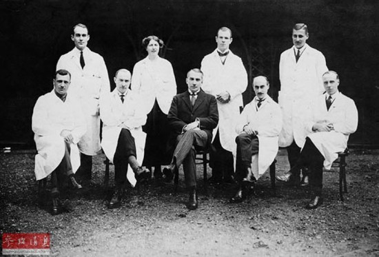 图为1911年,白求恩(前排左起第三位)与同事合影。