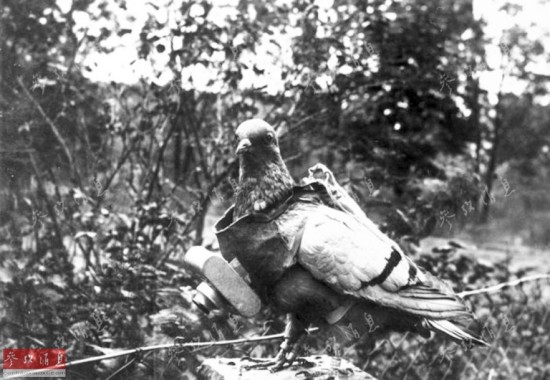 资料图片:一战期间,德国人用鸽子携带照相机用于战场侦察。