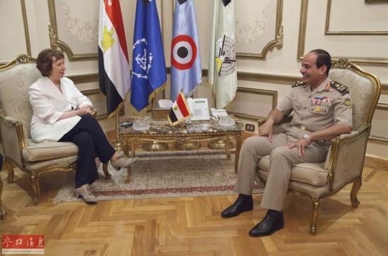 这是2013年7月29日塞西(右)在埃及开罗会见欧盟外交和安全政策高级代表阿什顿的资料照片。新华社/路透