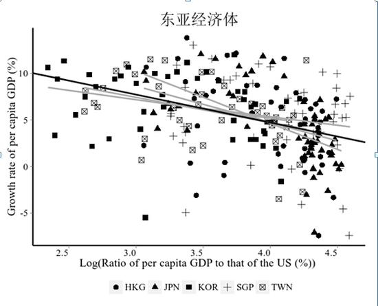张军:假设美国是我们要收敛到的目标水平值,实际上从日本、韩国的情况来看,这些高速增长的经济体,实际上没有达到收敛值。