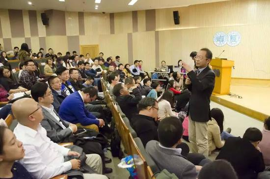 3月17日当天,原来设定的150人的小教室,熟料报名人数太多,临时换到容纳300人的大厅。即便如此,观察者网编辑按时到达会场时,只能在大厅门口踮脚眺望,隔着人墙聆听了。