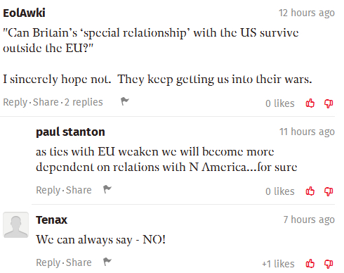 在该报道最后,有英国网友留言评论道:
