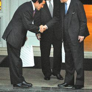 前台湾地区领导人马英九(左一)与前台湾地区领导人李登辉(右一)握手并向李登辉鞠躬(图片来源:台湾“中国时报”)据台湾“中央社”报道,台湾大学政治学系荣誉教授张麟征23日表示,前台湾地区领导人马英九放弃了两岸统一的终极目标,让她很失望,这是导致马人气低迷、国民党衰弱的原因之一。