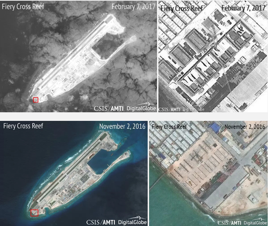 资料图:美报告公布的我国南海岛礁卫星图去年10月,当菲律宾新总统杜特尔特带着“温暖的兄弟情义”访华时,外界用“破冰”“转折点”来形容因南海问题而恶化的中菲关系。接下来,中菲关系重回正轨,南海问题随之降温。这带来了地区局势的缓和,也让菲新领导人得以专注国内经济发展和打击贩毒。这样的局面能否保持下去?如何从根本上避开引发南海争端的刺激点?《环球时报》记者日前赴海南参加博鳌亚洲论坛期间,就这些问题对南海研究院院长吴士存进行了专访。