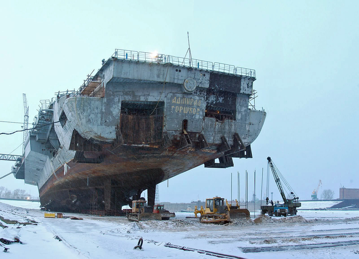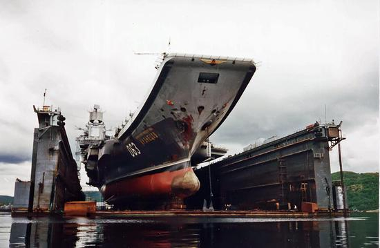 库兹涅佐夫号此前的维护工作都是在北方舰队的浮船坞上完成,当然浮船坞上能进行的维护工作非常有限,真的要进行大规模改装更换设备还是要进到普通干船坞中,更何况现在这艘浮船坞也是档期满满