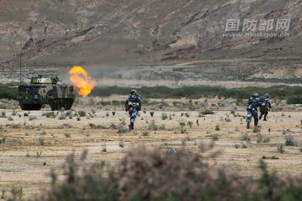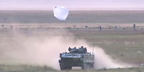 在伞兵战车支援下进行拔点作战此次演练中,作为空降兵编制改革试点的某合成营综合运用速射迫击炮、火箭炮、防空导弹、空降战车、反坦克导弹等十余种火器,对“敌”暗堡、装甲车、直升机等近30余个目标实施火力打击,有效地检验了多型火器在高原地域的作战效能。合成营在指挥员的精确指挥下,各作战单元密切协同配合,完成了对敌阻击、开辟通路、火力支援、兵力转移等多个课目,发挥了体系作战效能,也为今年年初的空降兵旅营制改革的方向奠定了基础。