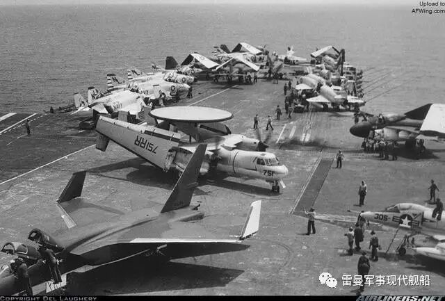 美国航母甲板上的E-2A早期空中预警机(AWACS)