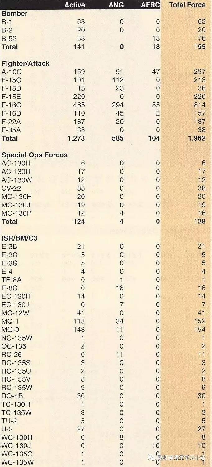 如,精确到每型飞机数量的美国空军装备年度报告,每年公开发布布