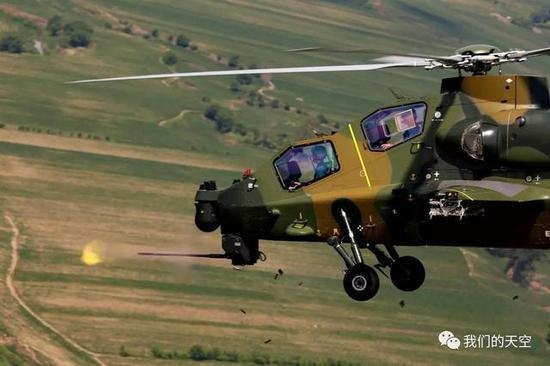 飞行员赛二伟:“对地攻击主要使用的是火箭弹和航炮,对地面半径15米圈内的目标按时间节点进行精准打击。航炮和航箭都是非制导武器,我们飞行员操纵直升机攻击地面,难度比用手枪在运动中打靶还要大。