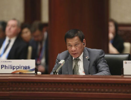 5月15日,“一带一路”国际合作高峰论坛上,菲律宾总统杜特尔特在会上发言。(新华社发)