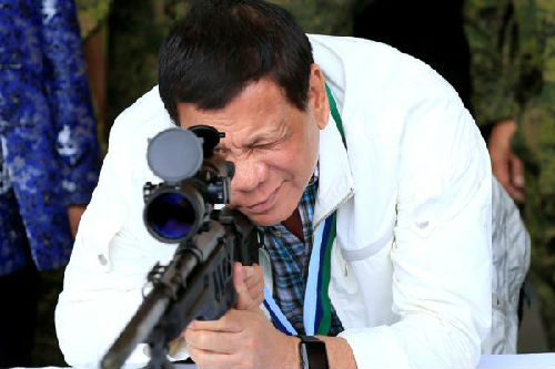 交接仪式上,杜特尔特兴致勃勃地端起一把中国产狙击步枪瞄准的新闻图片,被菲律宾网友热传。